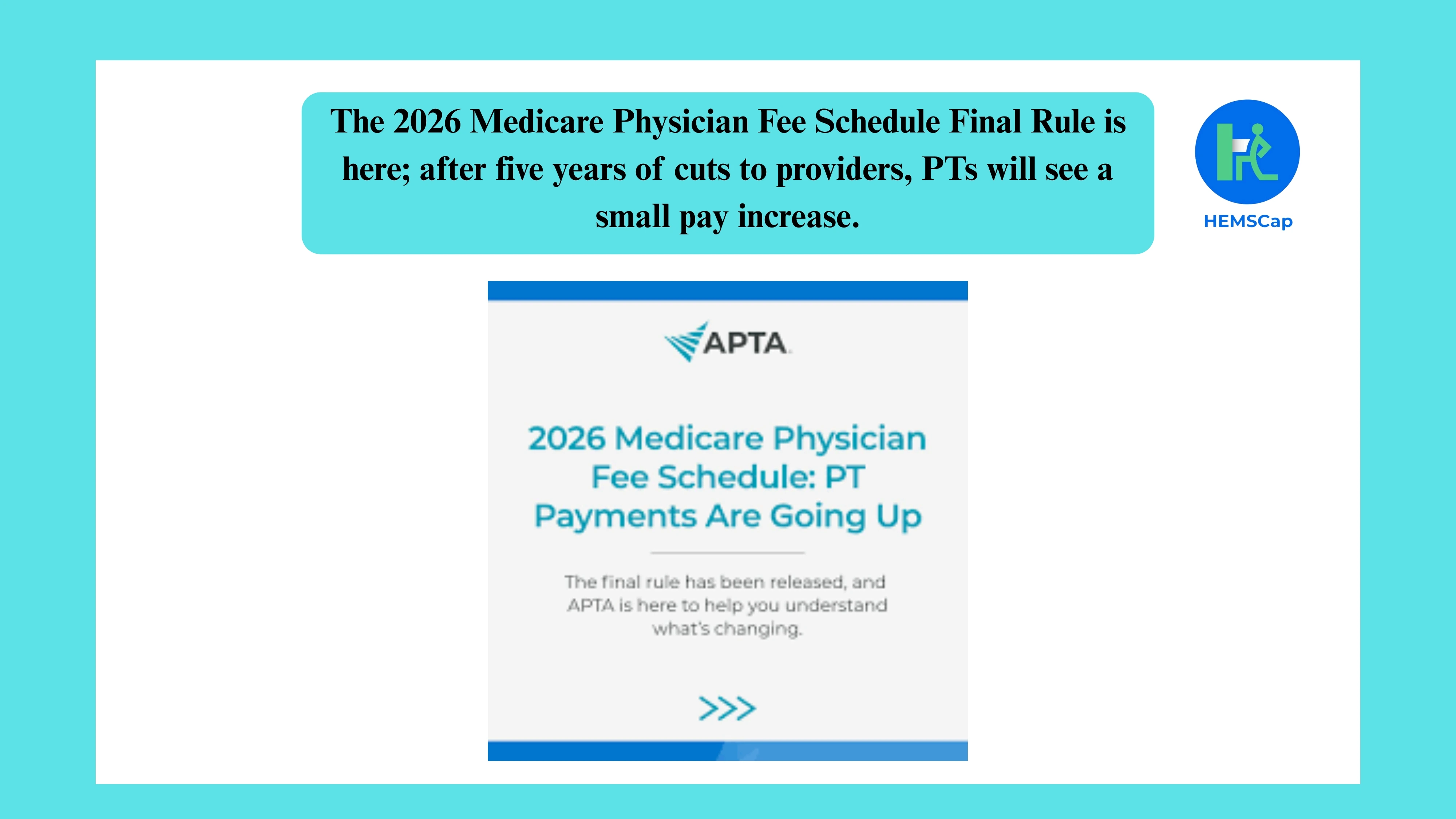 The Centers for Medicare & Medicaid Services (CMS) has released the final Physician Fee Schedule (PFS) rule for 2026, introducing key updates that impact healthcare providers across the U.S. After several years of remibursement reductions, the new rule brings a positive shift for the physical therapy community, with an average payment increase of approximately 1.75% for most physical therapists.
